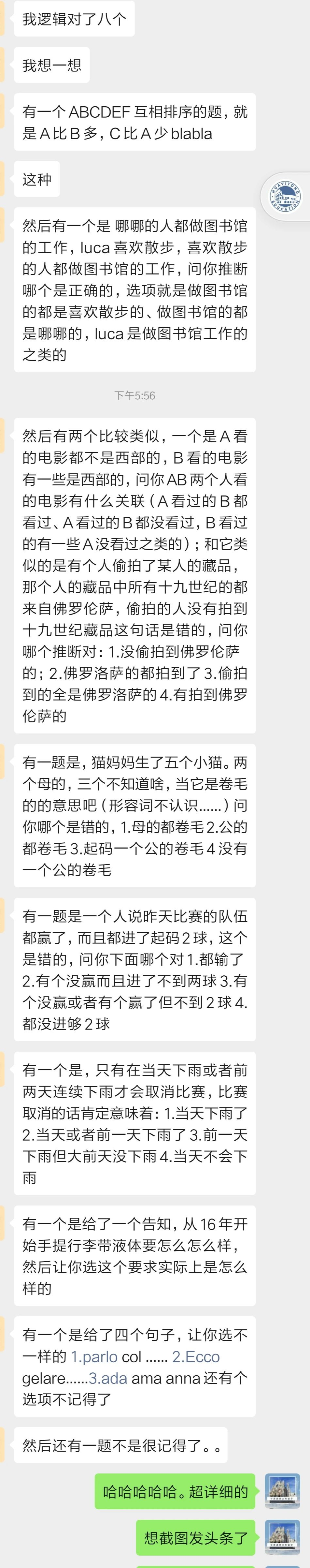 考博大(TOLC-E)的Z同学说:数学全对,但是逻辑和阅读比较困难,有很多专有名词。还有就是考试填错扣的多。