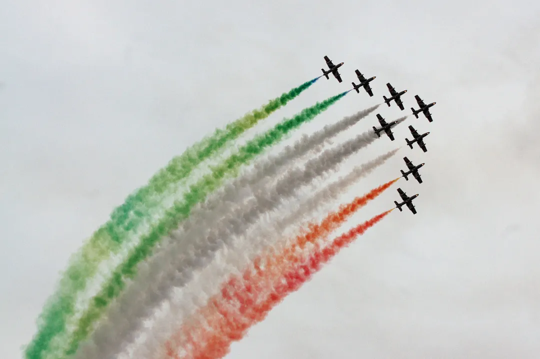 (2020年因疫情取消,但从5月25日起至6月2日,意大利"三色箭"飞行表演队在全国的21个城市举行了飞行表演,为庆祝意大利第74个共和国日并激励民众团结抗疫。“三色箭”在当地时间6月2日上午9时从首都罗马上空飞过。)