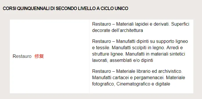 除此之外,还有一个本硕连读(5年制)的专业:Restauro 修复