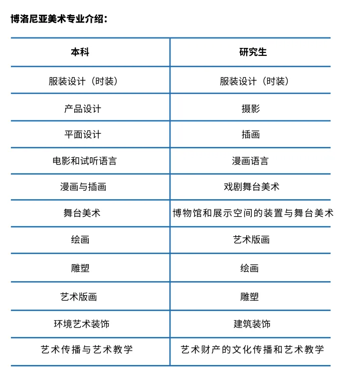 ⑴ 博洛尼亚美术学院专业介绍