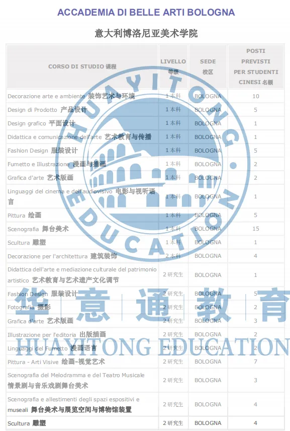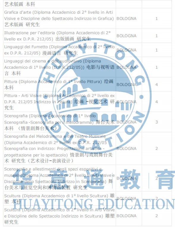 ❷ 博洛尼亚美术学院2021/2022学年计划生招生简章