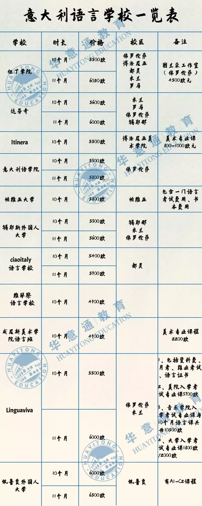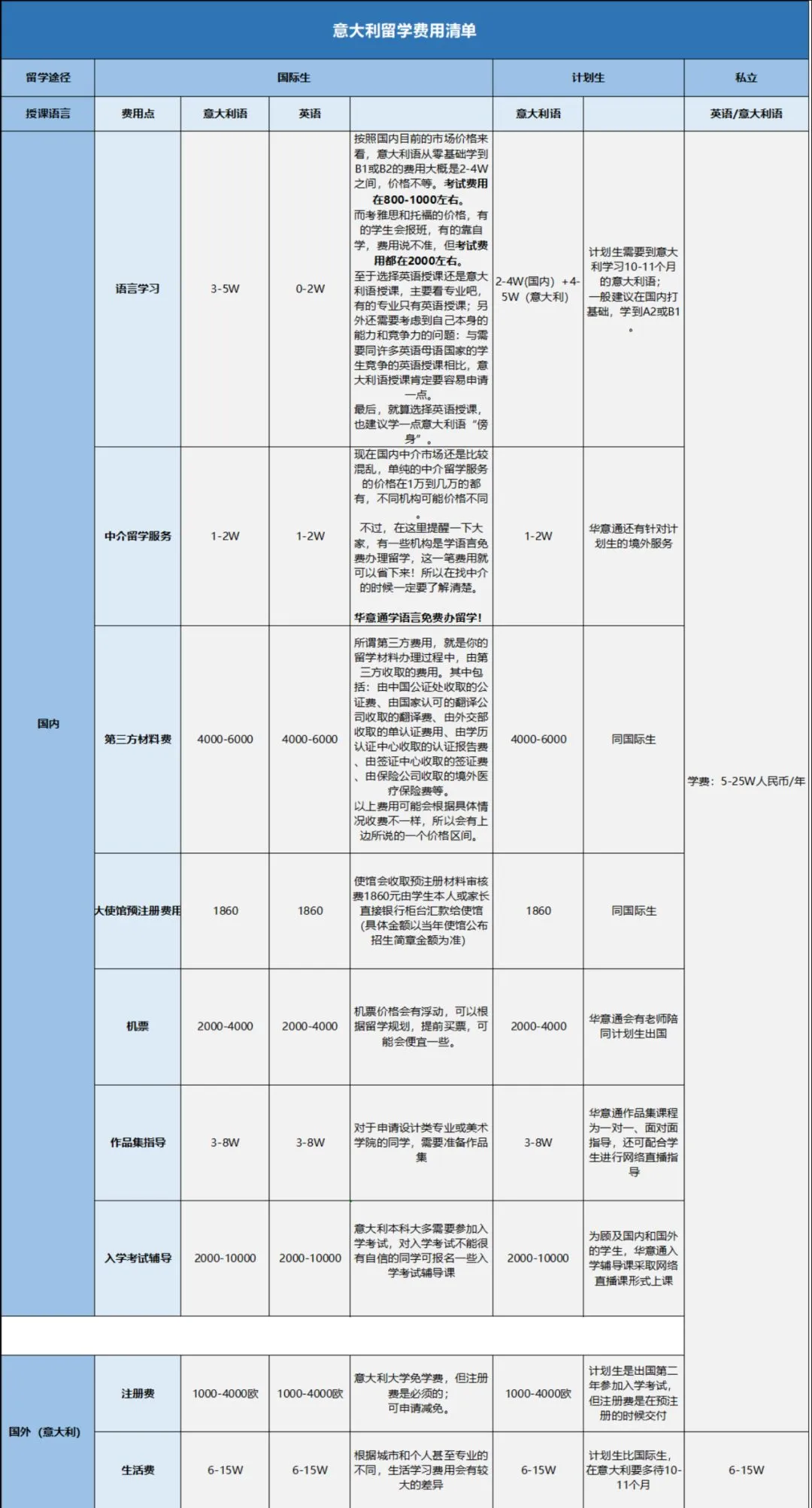 1⃣️计划生需要的意大利语言学校费用,整张表: