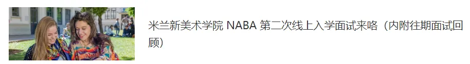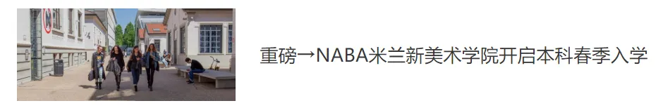 NABA米兰新美术学院——意大利高等艺术院校,也是意大利最大的美术学院。米兰和罗马两大校区,在校生4000多人。开设专业涉及设计类及纯艺类,可选英语授课或意大利语授课。本科和研究生专业均受到意大利教育部学历认证,也被中国教育部学历认可。NABA毕业生一年内的就业率高达90%!