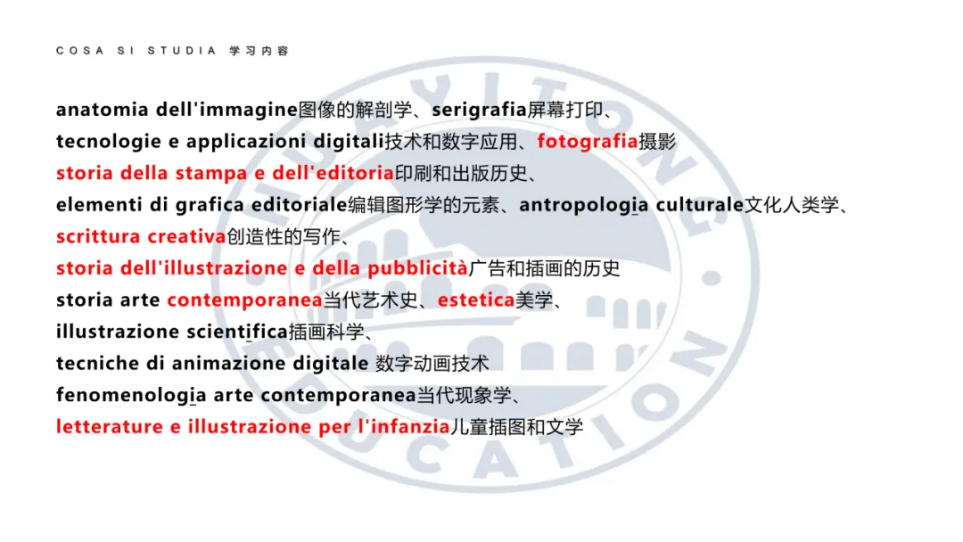 相对于其他国家的学生来说,我们对专业的基础知识内容,也就是艺术史是比较欠缺的。没有真正在意大利美院上过学的人是不会知道当地美术生的文化水平其实不差。包括艺术史和自己专业的理论知识,在你的未来的学习中也是很具有挑战性的,大部分延期毕业的同学都是卡在了史论的课程上。
